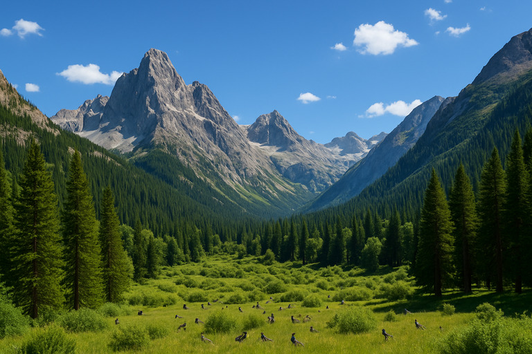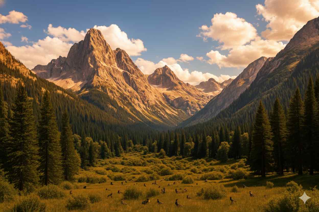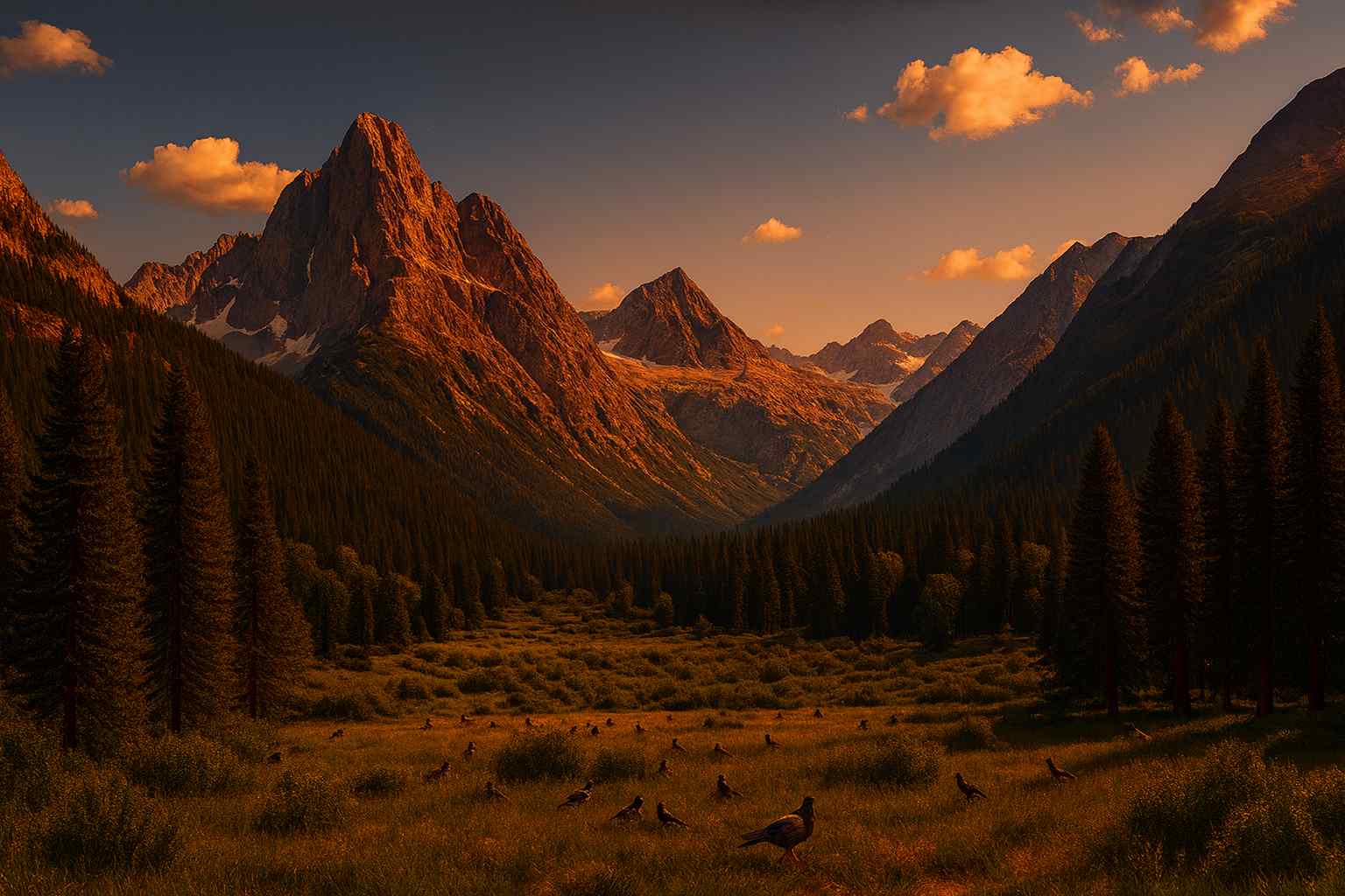 Prompt: “Convert this daylight mountain landscape into a dramatic sunset scene with golden light.”
