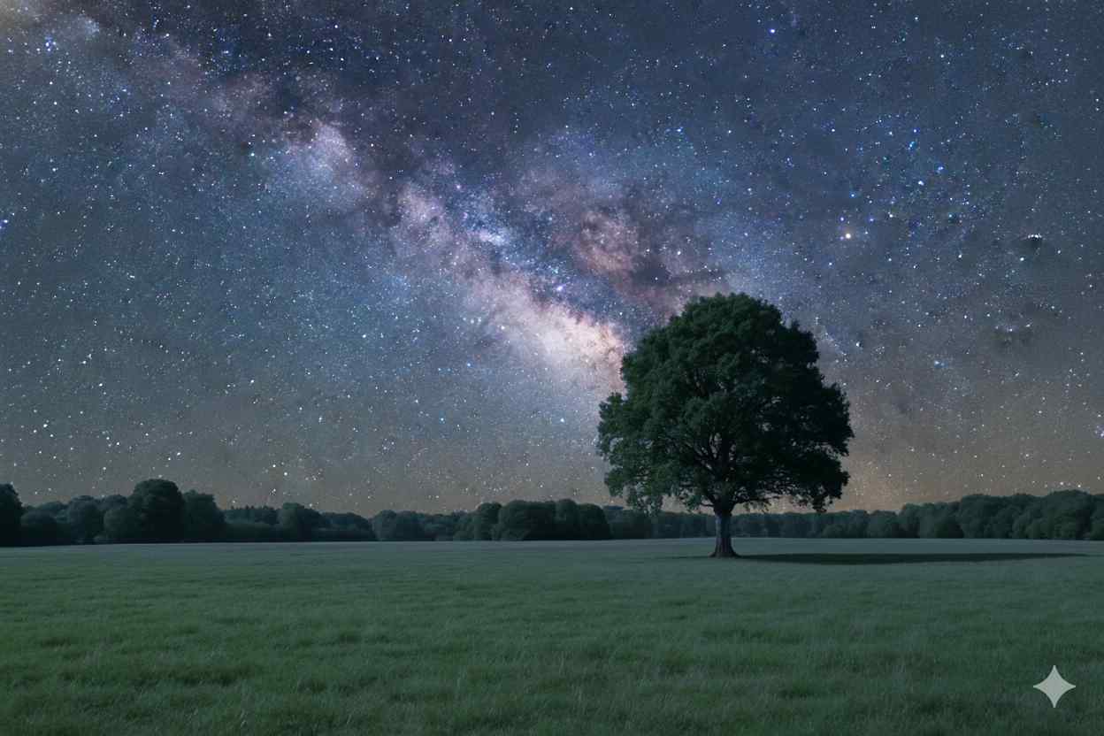 Prompt: “Replace the sky with a Milky Way night sky but keep ground lighting natural.”