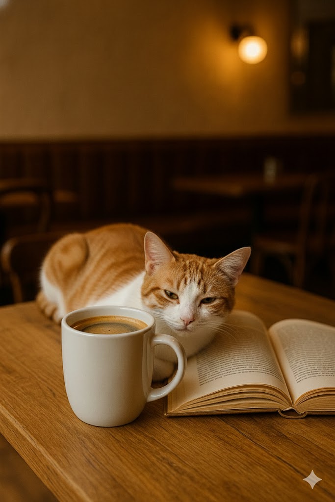 Prompt: “Add a realistic cat sitting on the table, matching lighting, shadows, and camera angle.”