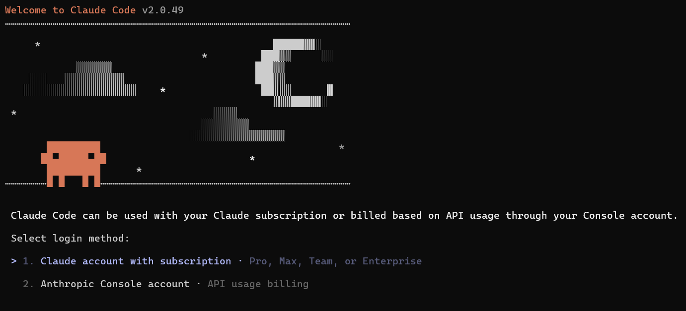 On first launch, Claude Code will guide you through authentication:
