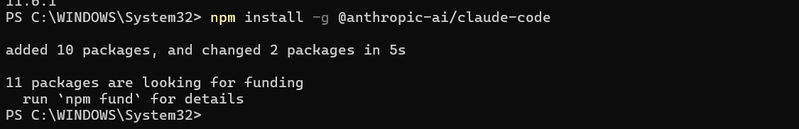 Now for the main event! Install Claude Code globally: